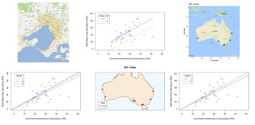Topics: introduction to geospatial models. Visualization with maps. Analyze the Australian Football League audience. Spatial autocorrelation. Autoregressive, lag and error models. Spatial logit and probit models. More advanced models.